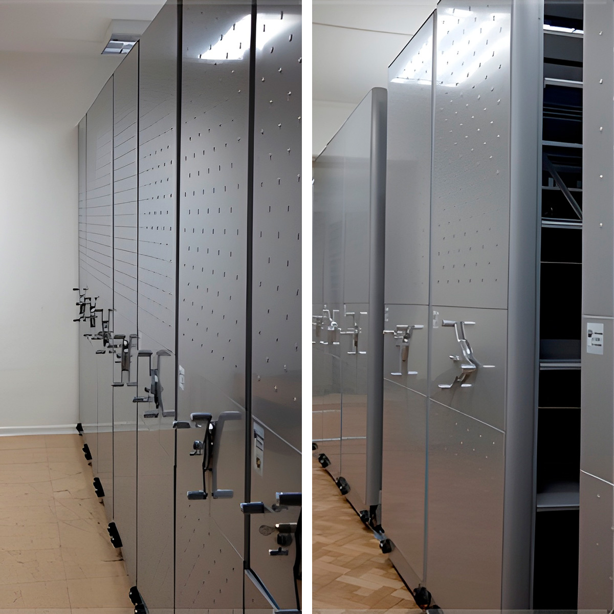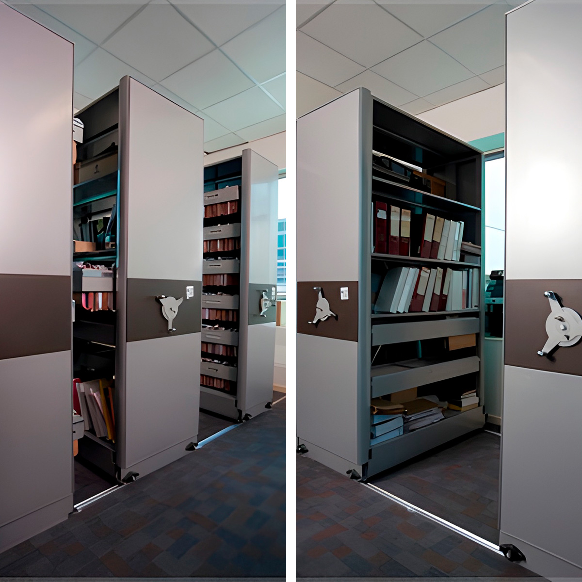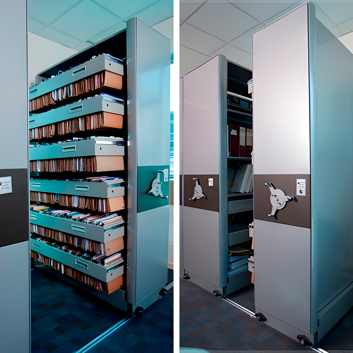 Producto de alta gama para almacenaje que garantiza el orden y resguardo de todo el material archivado, siendo una alternativa moderna que optimiza el espacio de un área determinada a través de la maximización de estanterías para almacenaje de documentación, y disminución de espacio utilizado en una instalación. El sistema es compatible con todos los medios de archivo existentes y pueden complementarse con una amplia gama de accesorios.